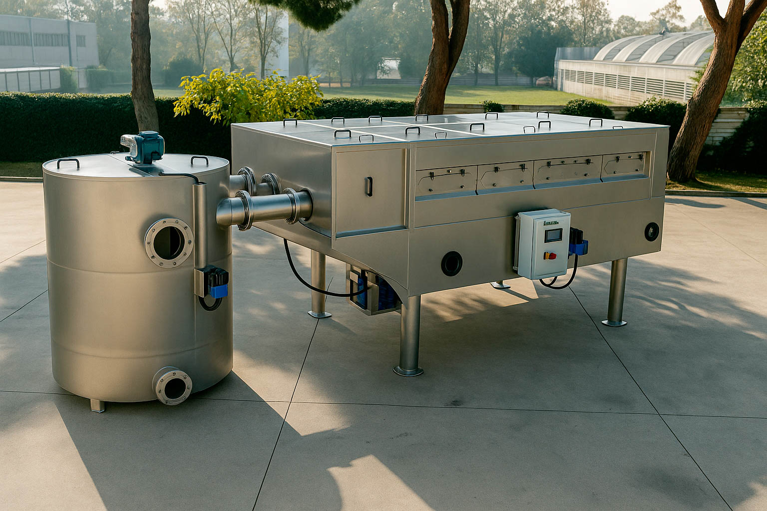• Un tanque dedicado para almacenar y transferir lodos espesados, completo con una sonda de nivel y una bomba de lodos espesados para un funcionamiento perfecto.